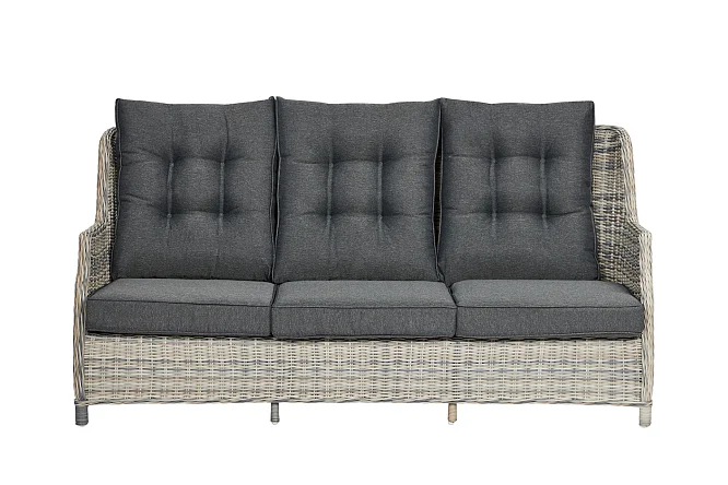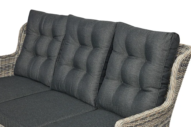 Набор поставляется не просто голой мебелью, а также включает в себя подушки для сидения и для спины, чтобы на улице можно было провести как можно больше времени. Размеры подушек и их количество: 3 подушки для спины 61х70х8 см, 2 подушки 56х8х70 см, и 5 подушек для сидения размером 60х10х64 см. Подушки для сидения представляют собой плотные прямые подушки, подушки для спины – красивые квадратные, обычные подушки. Цвет всех мягких элементов – темно-серый, материал съемного чехла – полиэстер.