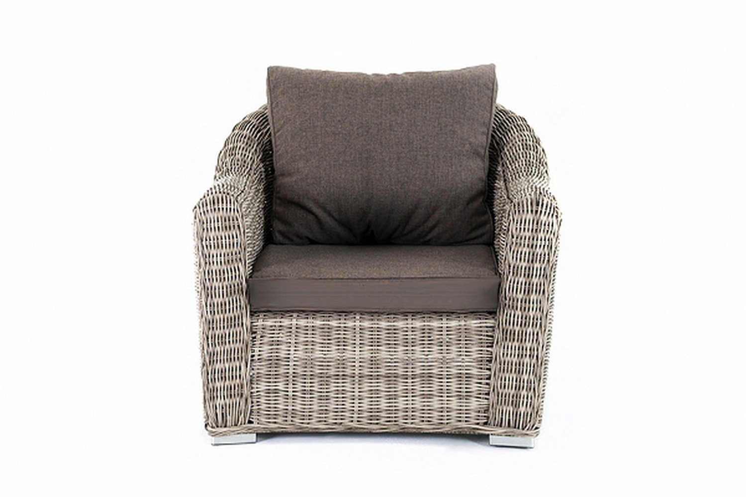 Размер кресла 90х81х88 см, имеется высокая спинка и широкие подлокотники. Кресло сможет стать отличным дополнением комплекта уличной мебели из той же коллекции, либо же стать самостоятельным элементом.