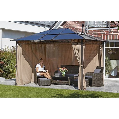 Предлагаем купить оригинальные шторы для беседки 3x4м/3,5х3,5 цвета кофе с молоком в комплекте с прихватами на липучках.