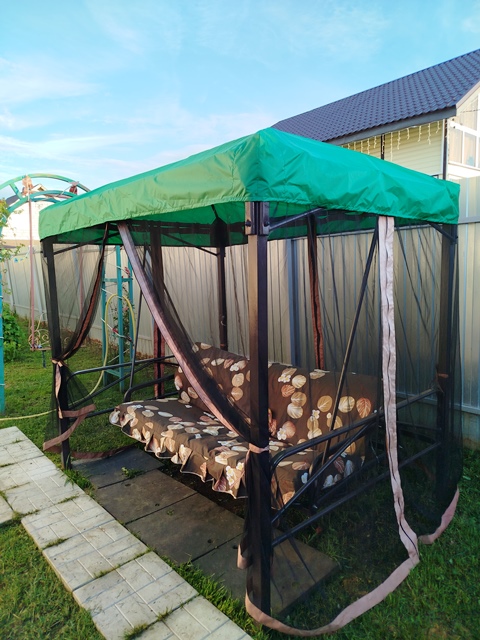 Купить Тент крыша с москитной сеткой на качели-павильон садовые Эдельвейс, цвет зеленый цена 9900 руб. в Москве и СПб с доставкой по России